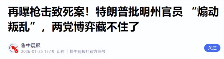 也正因如此,特朗普的胜选才显得顺理成章,而明尼苏达第二起执法枪击案的发生,也就成了必然 —— 两党都想借着这起事件搅动民意,让其成为中期选举的棋子。